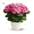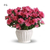 Arrangement élégant d’orchidées blanches et roses avec plantes vertes dans des pots modernes sur fond blanc — décoration florale raffinée pour boutique de fleurs de luxe.